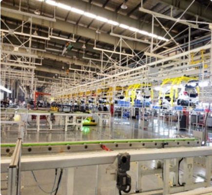 Mainly assemble chassis parts (suspension, wheels), exterior parts (front and rear bumpers), etc., and use modern EMS+VAC mechanical equipment to accurately synchronize during the assembly process