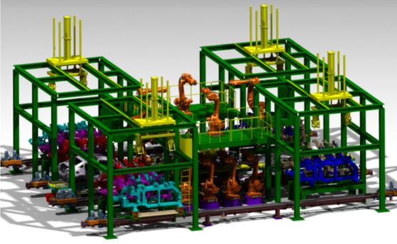 The PICK UP flexible assembly system has the characteristics of small footprint, fast switching speed, random production of multiple models, mixed production of multiple models, dense robot arrangement, and can adapt to the production of 6 models. It is used for body assembly of the body-in-white welding production line welding.